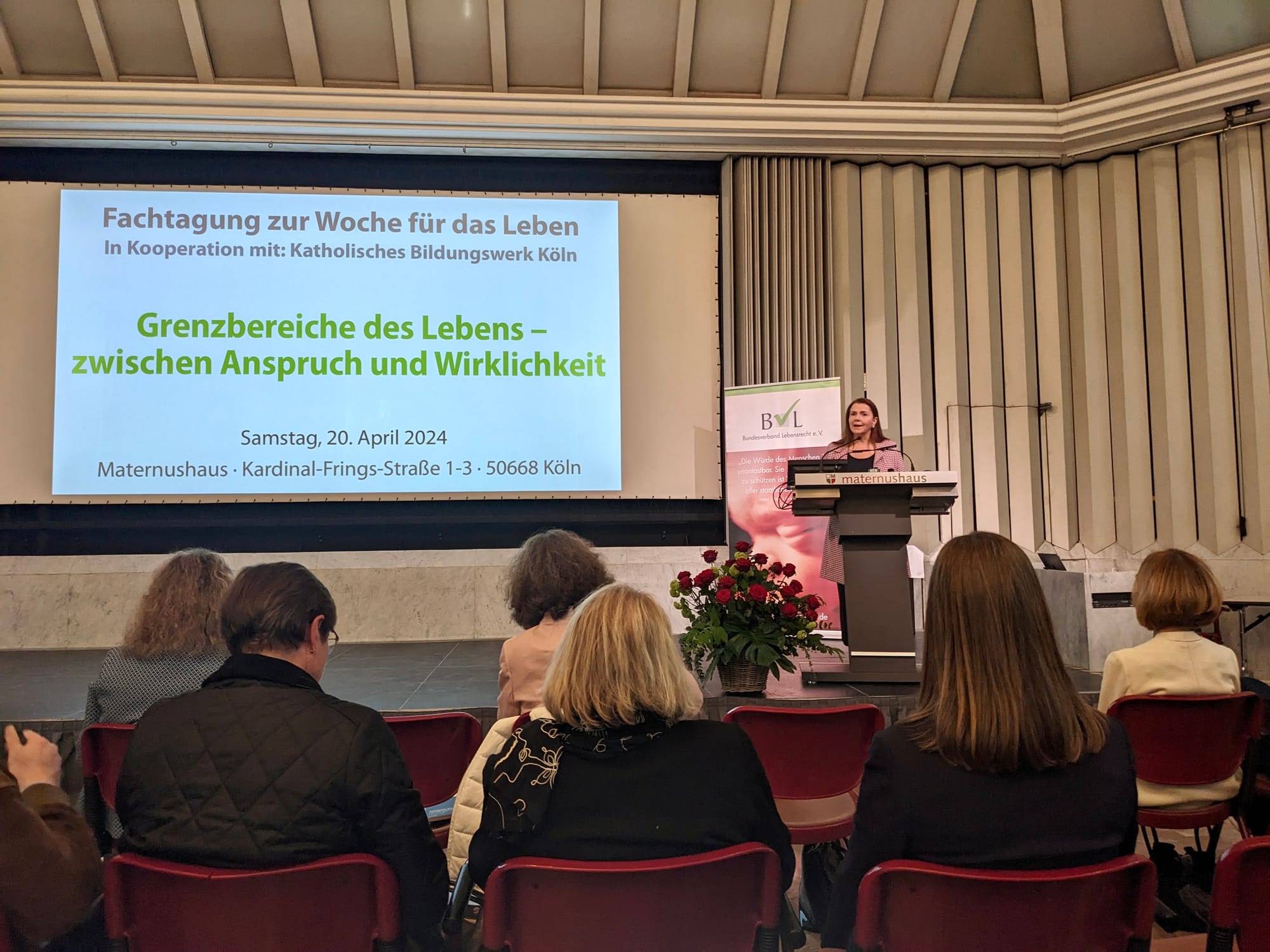 „Die Tagung liegt mitten in einer Phase von rasanten Entwicklungen und Entscheidungen im Bereich der Bioethik.“ So begrüßte die alte und neue Vorsitzende des Bundesverband Lebensrecht e.V., Alexandra Maria Linder M.A., die über 120 Teilnehmer der diesjährigen Fachtagung zur Woche für das Leben am vergangenen Samstag in Köln, die in Kooperation mit dem Katholischen Bildungswerk stattfand. Als Beispiele nannte sie die SoHO-Verordnung der EU von Herbst 2023, die Embryonen auf dieselbe Stufe stellt wie Blutplasma oder Gewebe, die fragwürdigen Arbeitsergebnisse der von der Bundesregierung eingesetzten Kommission zu § 218 StGB und die Aufnahme einer „garantierten Freiheit der Frau, eine freiwillige Schwangerschaftsunterbrechung vorzunehmen“, in die französische Verfassung.